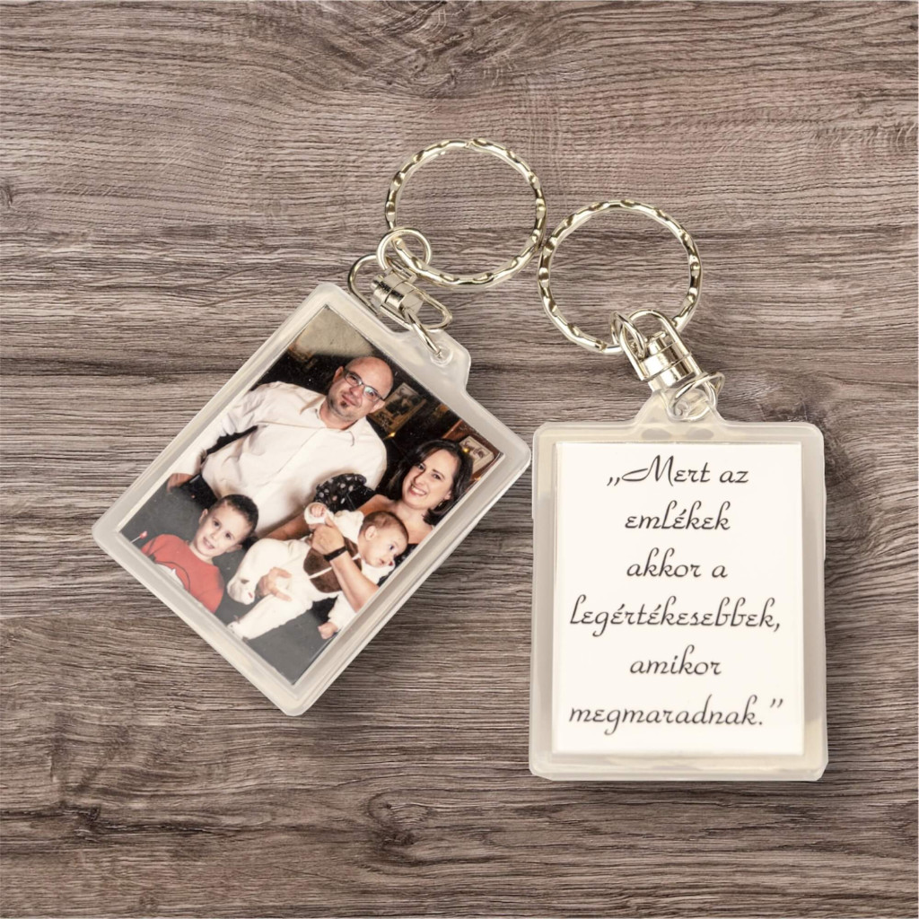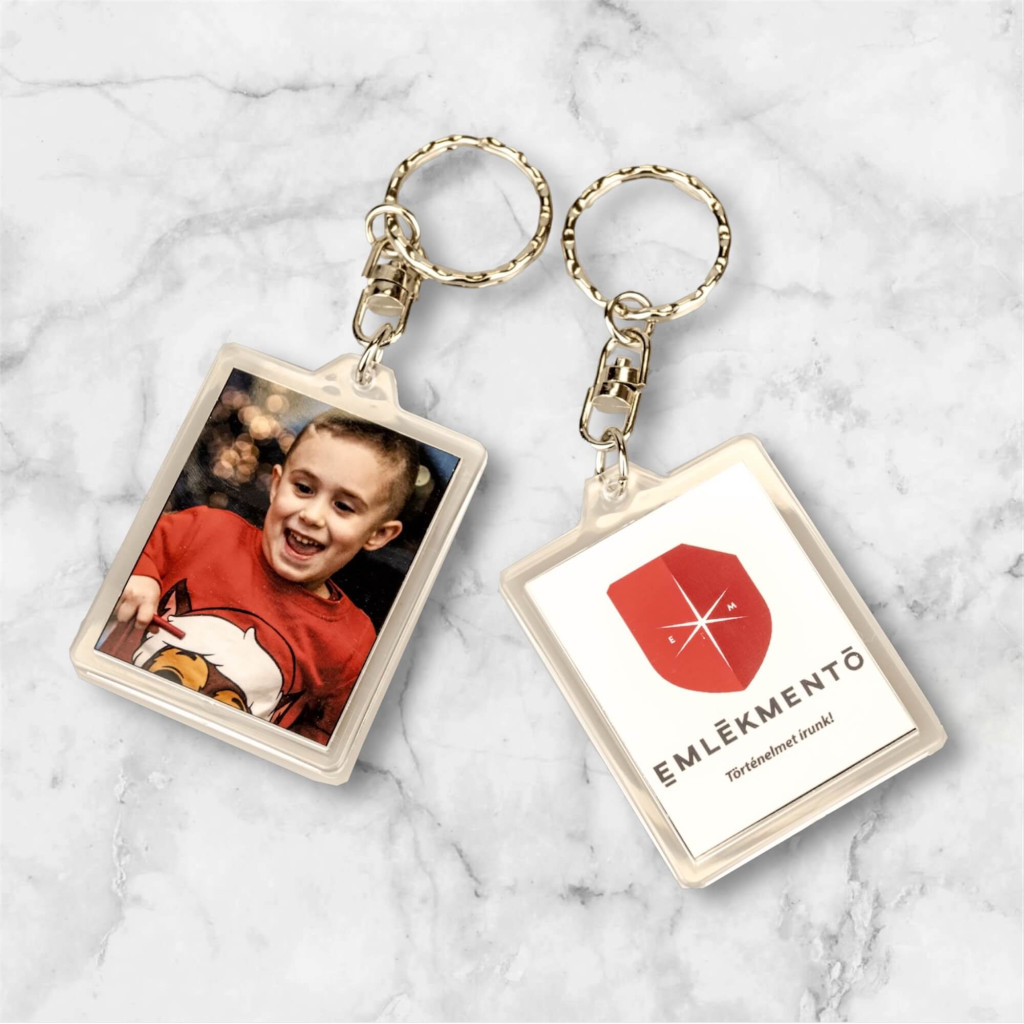 A kulcstartóba 45x35mm-es fotót tudunk elhelyezni, mind a két oldalra.